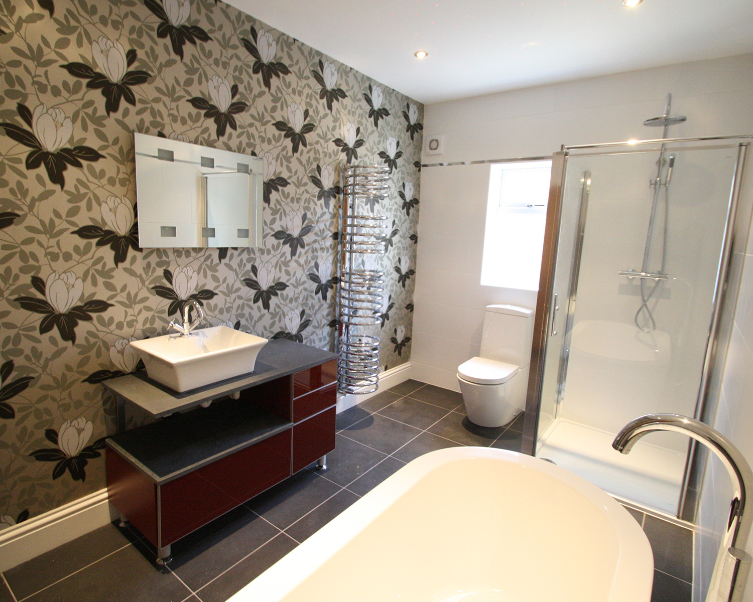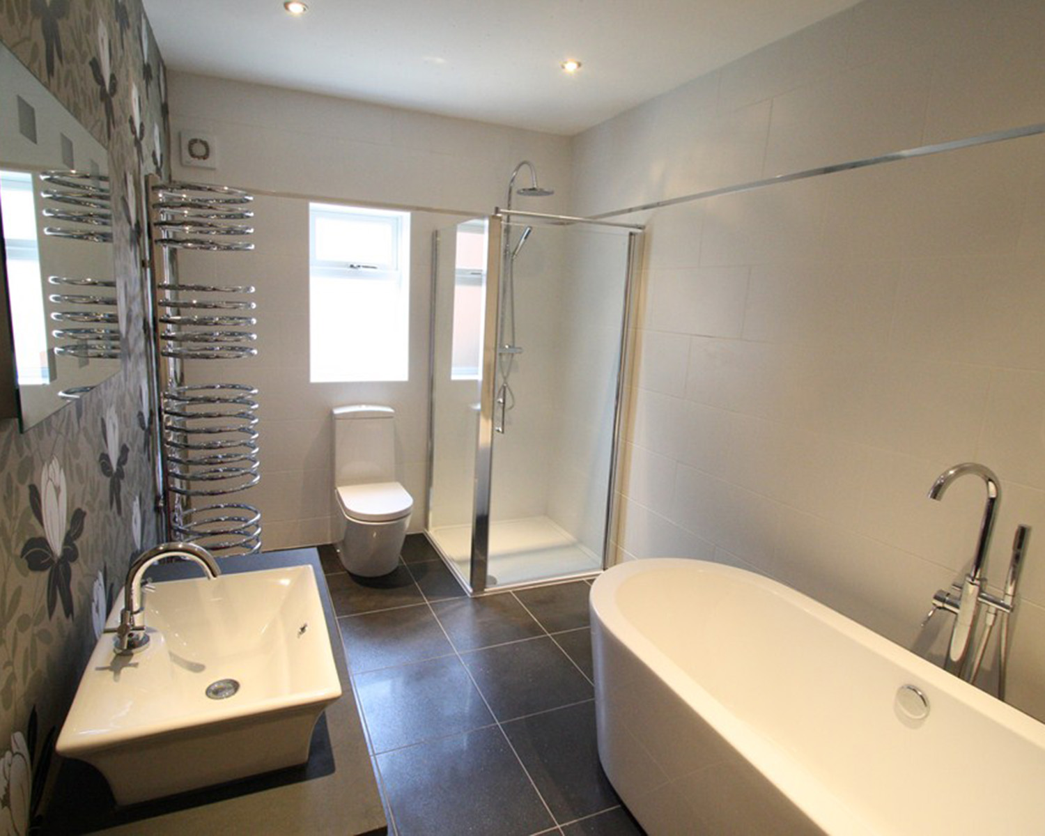 We had great fun designing the layout, the kitchen, utility and three bathrooms for the house, creating a beautiful family home. Not an inch of the house was left untouched. Projects like this always show how our team consists of every conceivable trade, carrying out every type of home improvement project within one large project, all managed by Richard or Nicola.